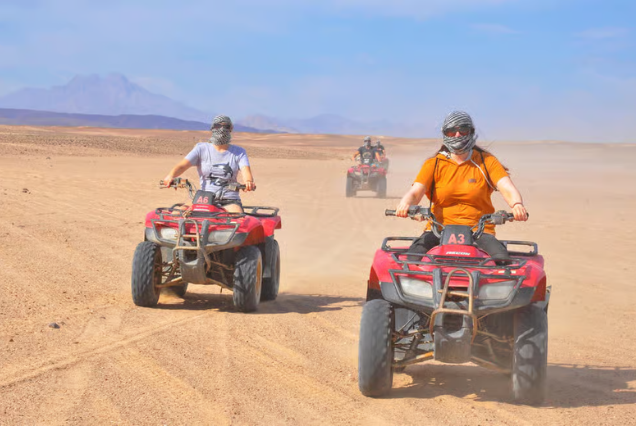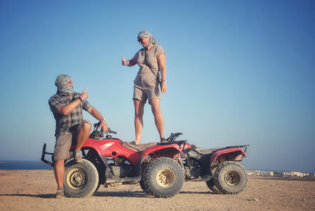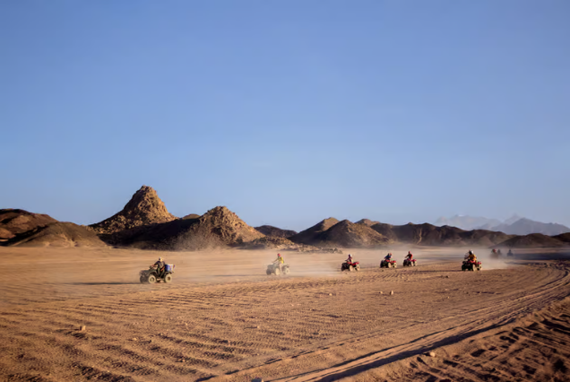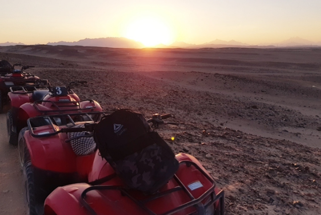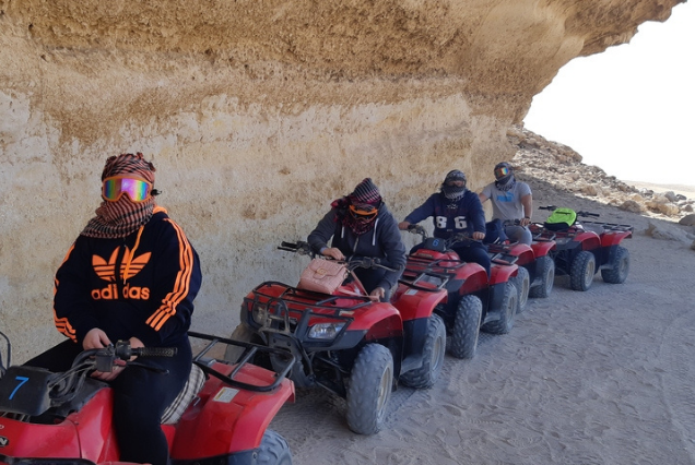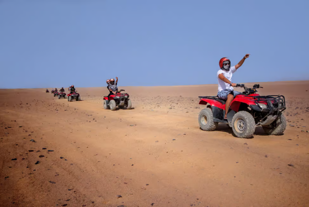 Our transfer will pick you up from your hotel in the afternoon so you can begin your desert adventure. When you arrive at the safari station, a qualified guide will give you a safety ride briefing and teach you how to operate the quad bikes and Spider-Buggy Car.