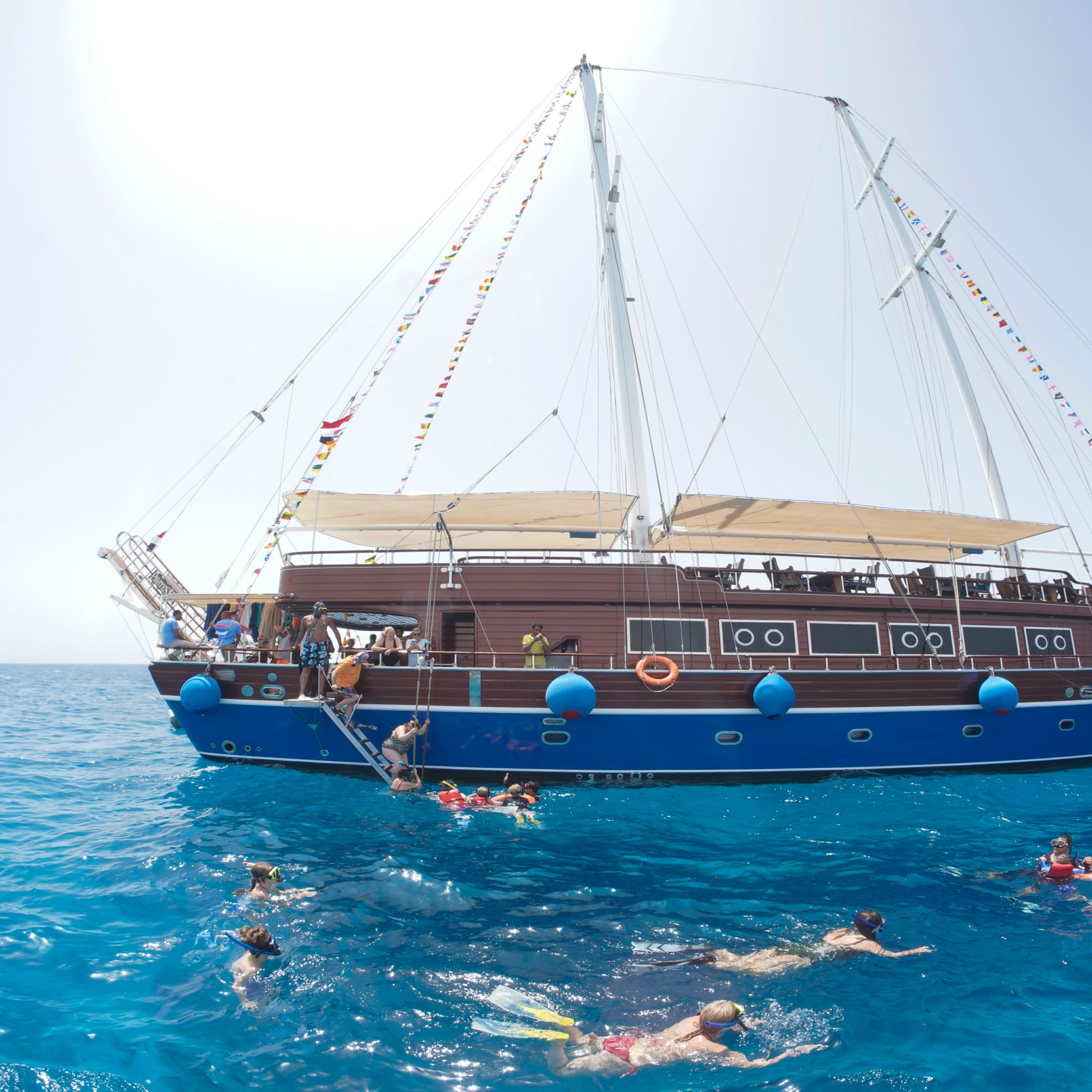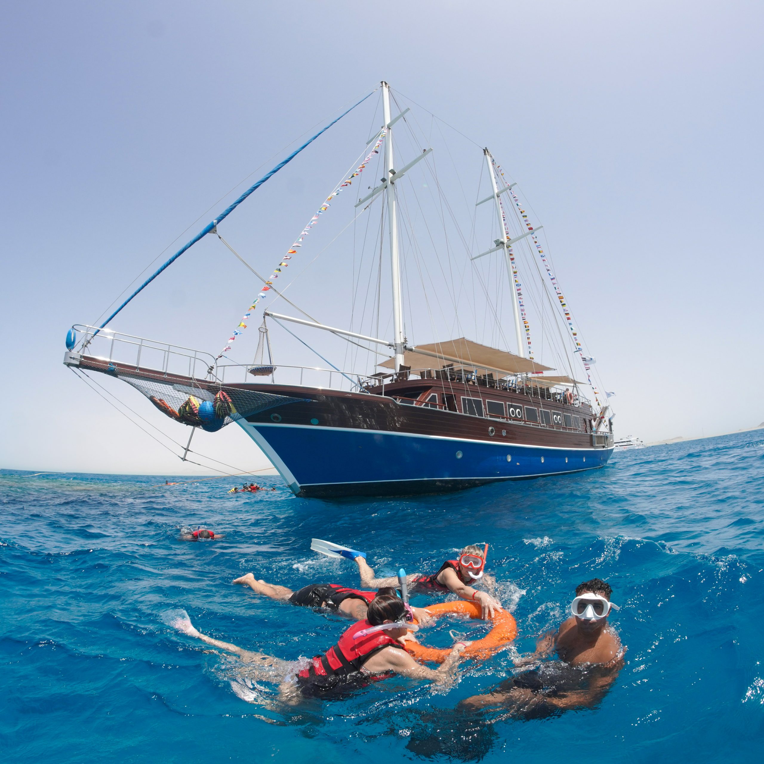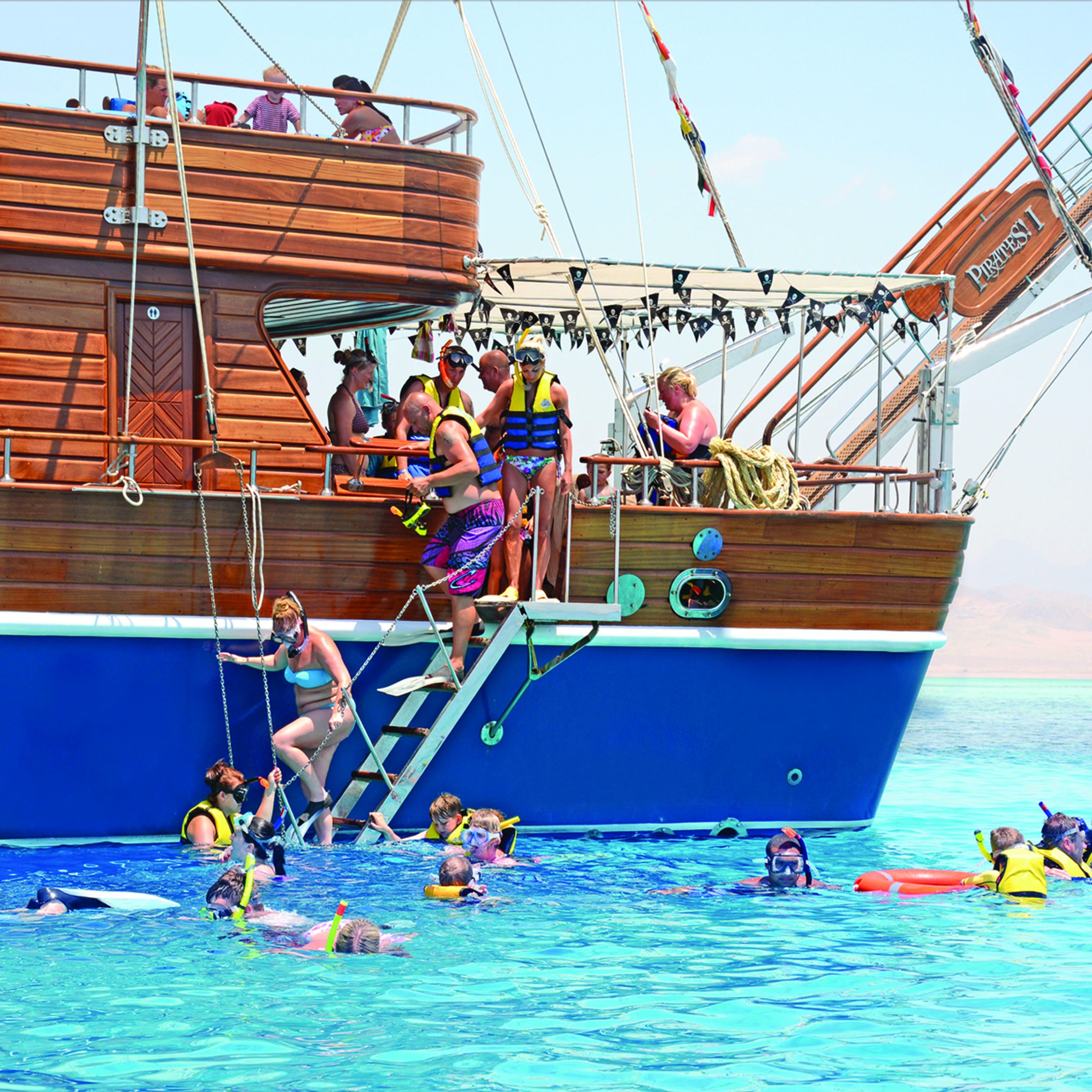 The most exquisite and opulent boats in the Red Sea are the Pirates Sailing boats, which provide daily recreational snorkeling excursions.