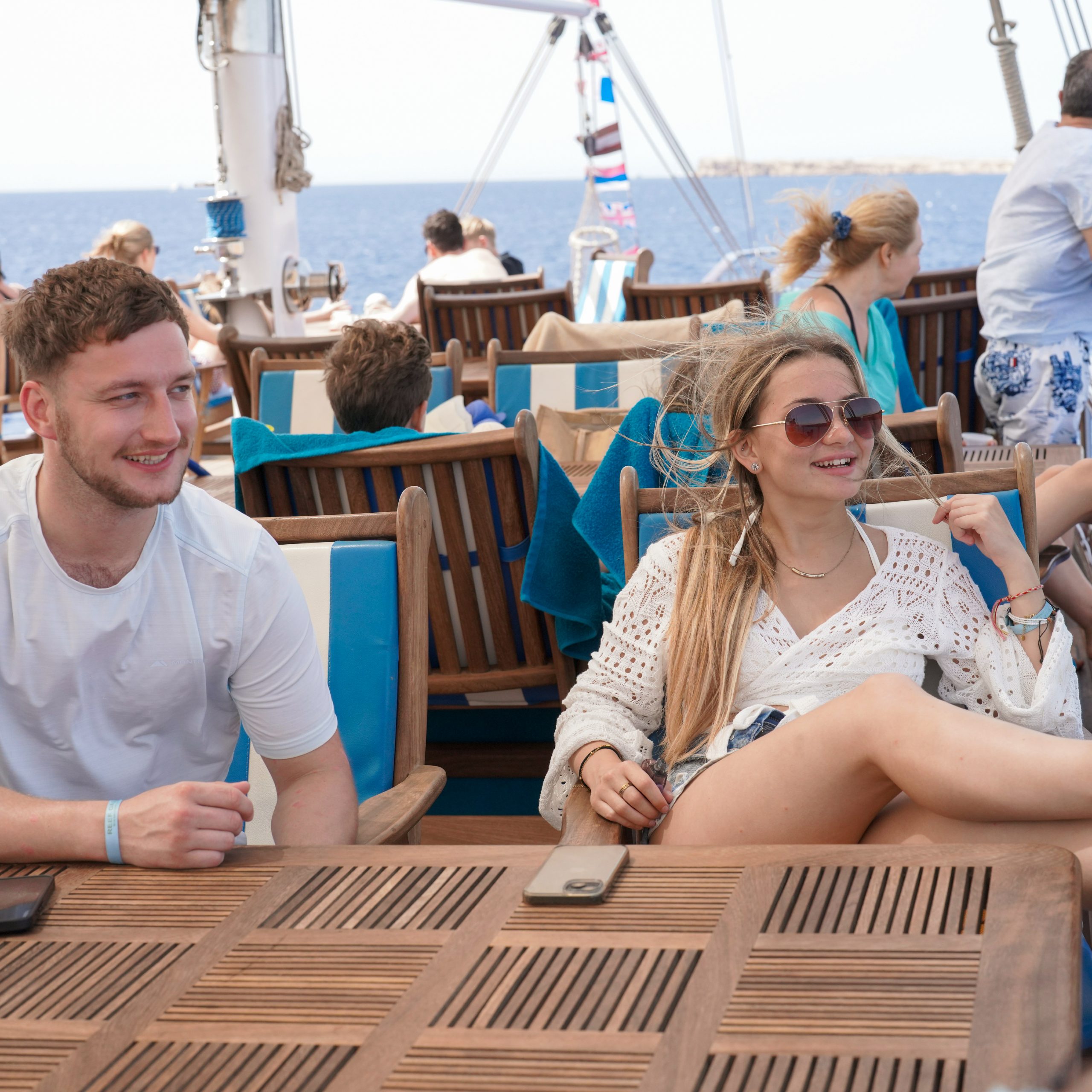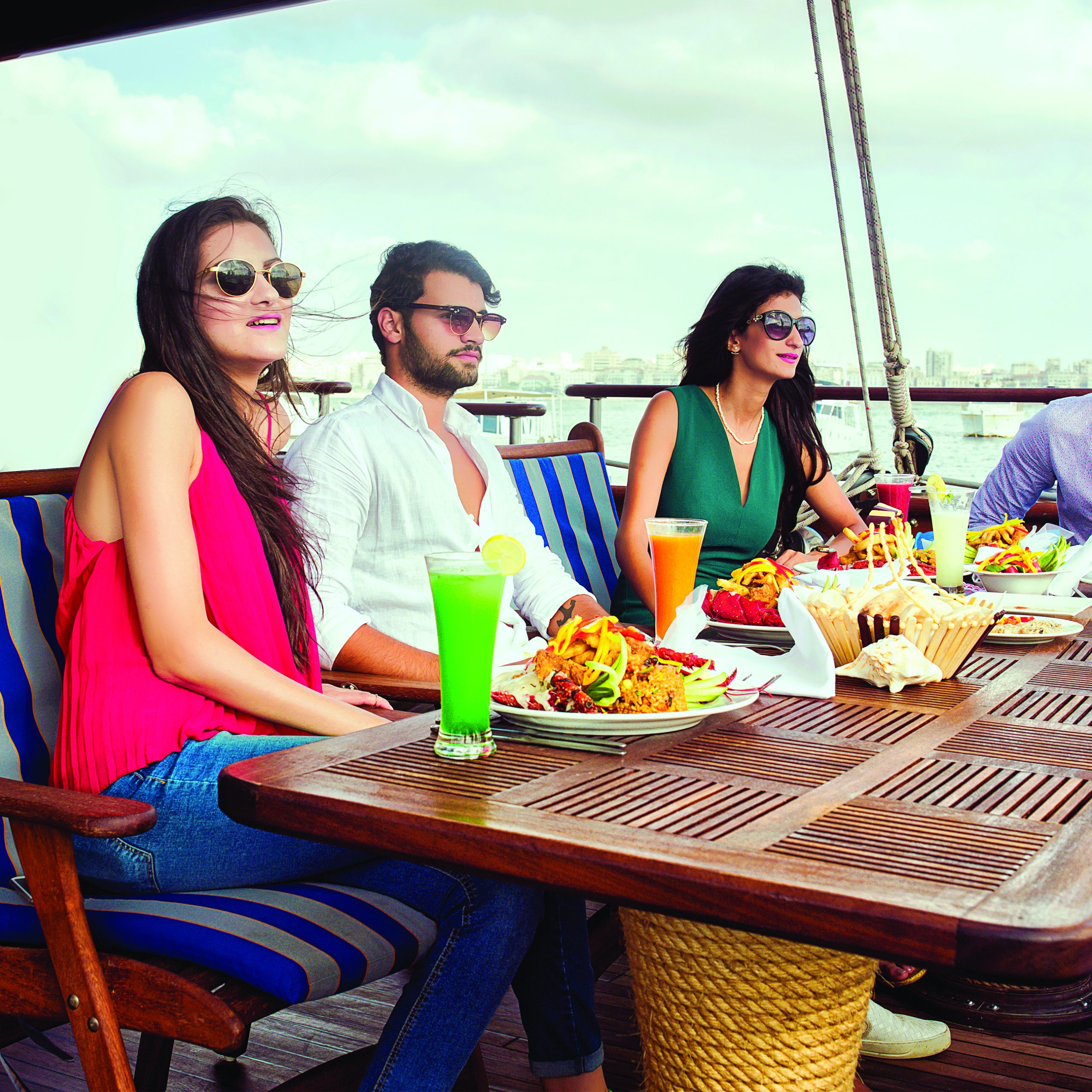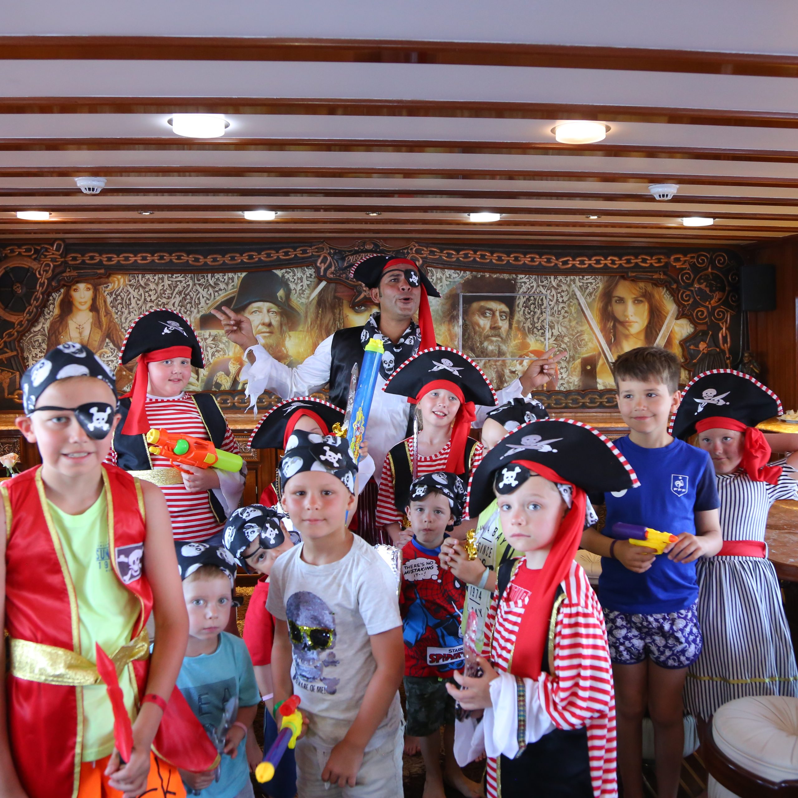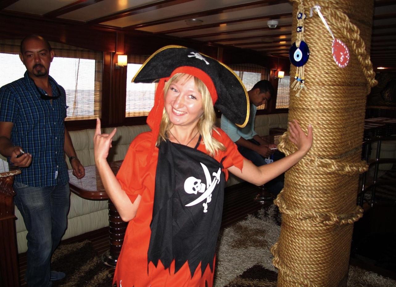 The Pirates yachts are two-masted, wooden vessels that evoke the heyday of sailing. They have a large, air-conditioned top sun deck and two lower deck salons that are lavishly furnished in wood and marble and exquisitely adorned with a pirate motif. Your onboard banquet open buffet lunch is provided in the salon.